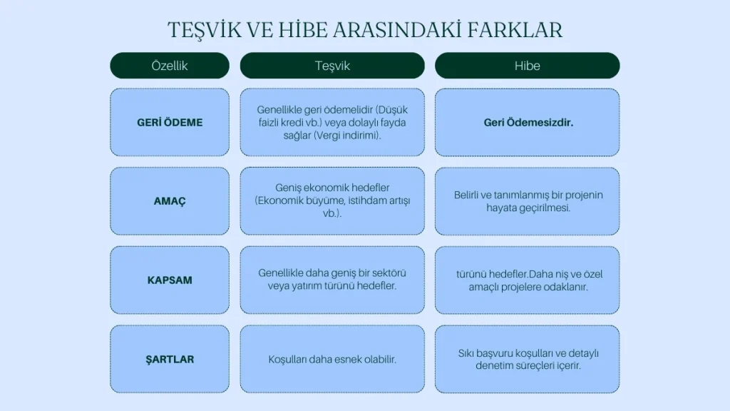 Tablo ile: Teşvik ve Hibe Arasındaki Farklar